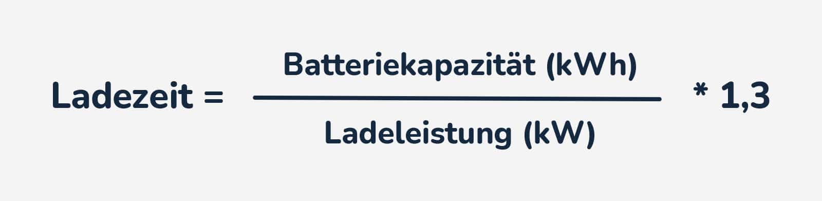 Es kann durchaus vorkommen, dass die Ladeleistung während des Ladevorgangs nicht konstant ist. Deswegen wird bei der Berechnung ein Multiplaktor von 1,3 aufgeschlagen.
