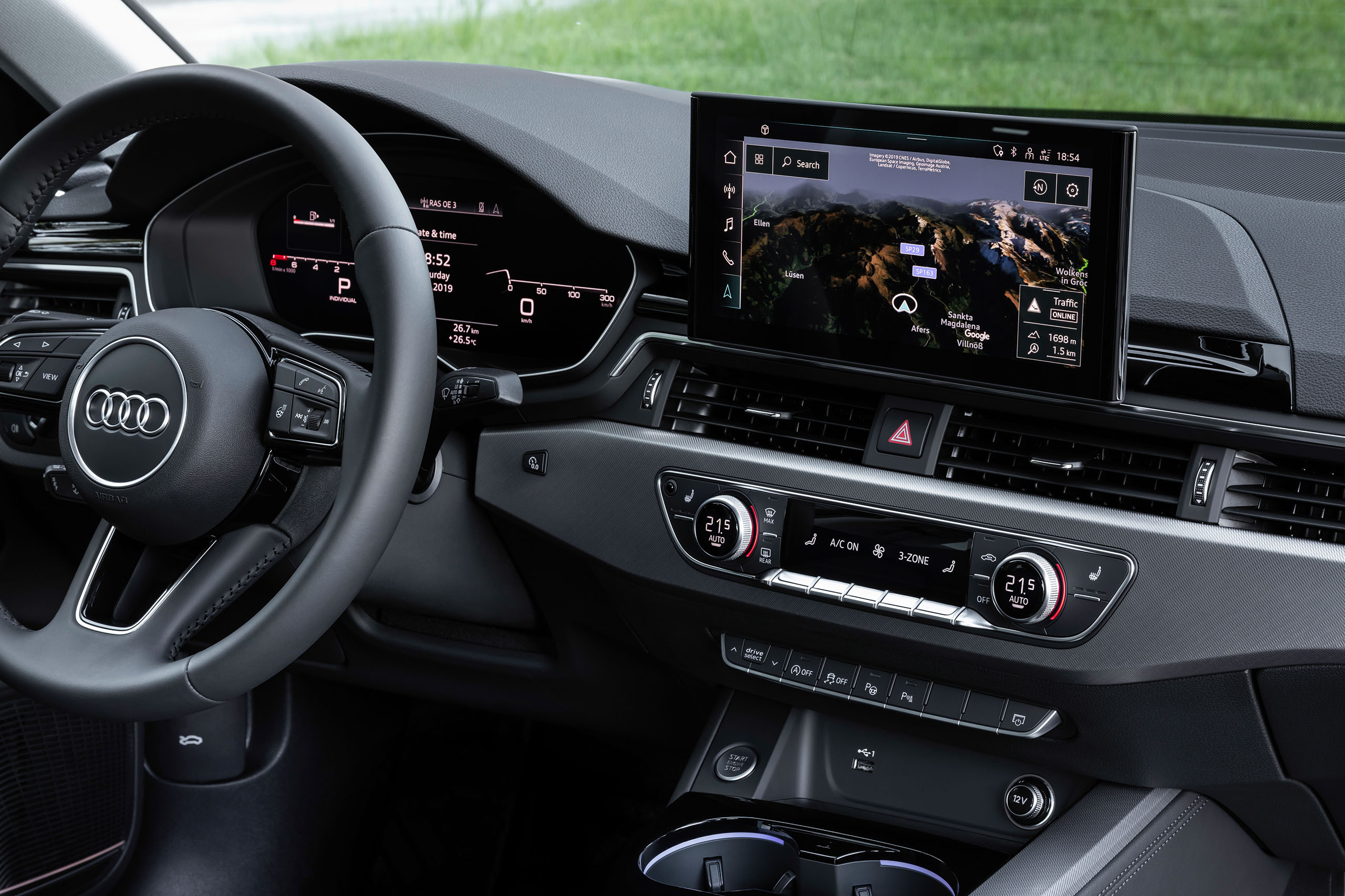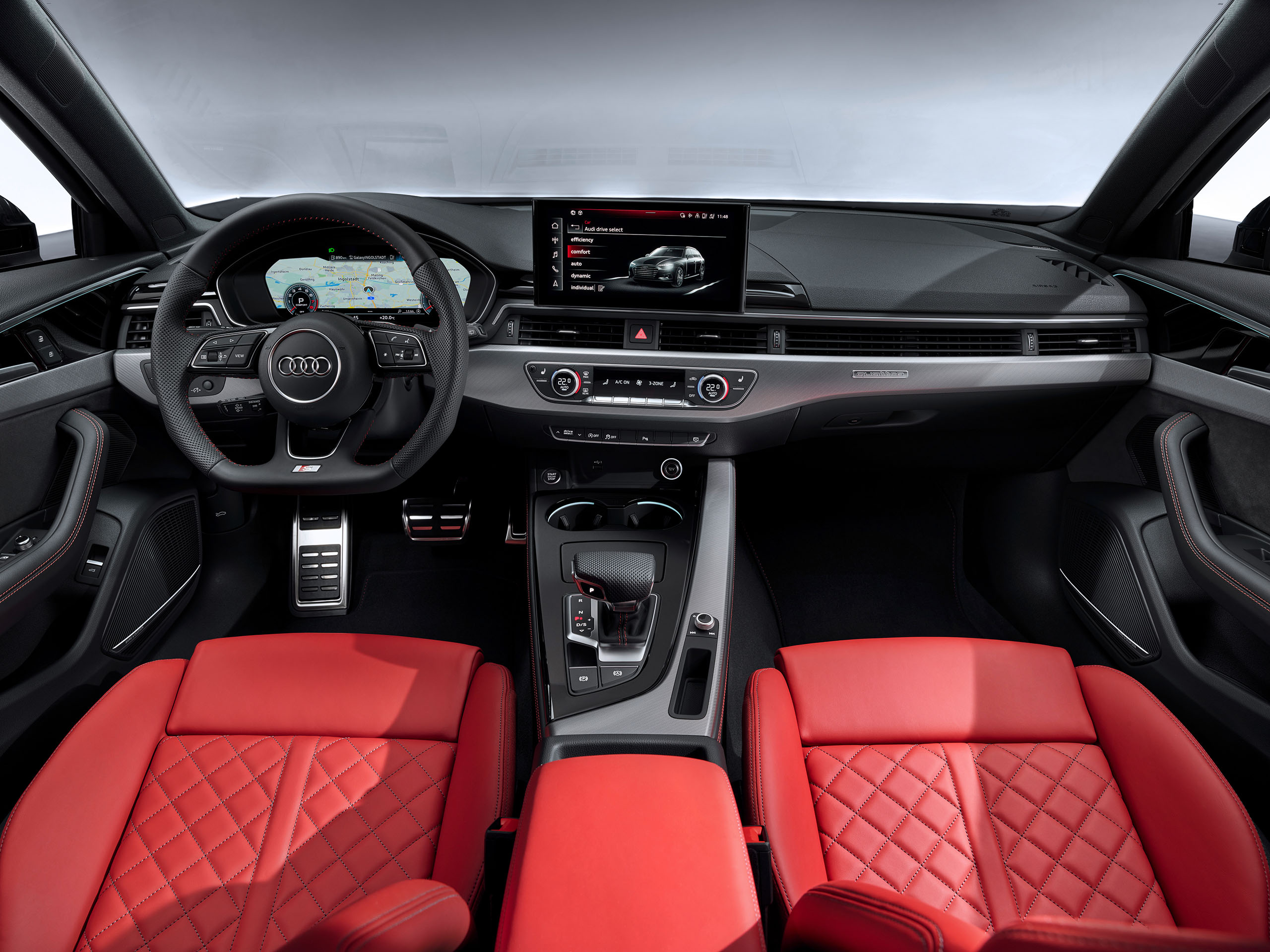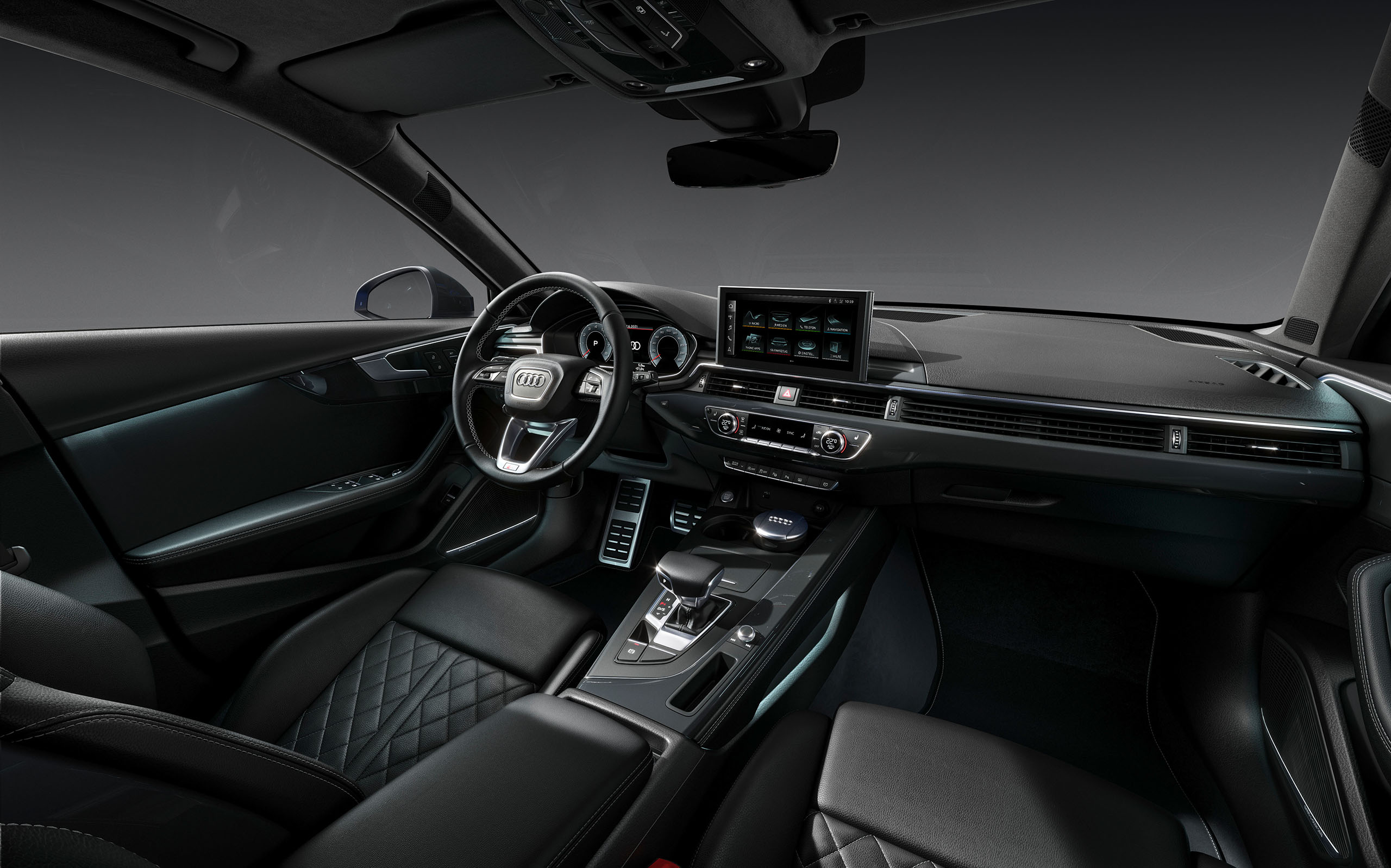 Der A4 zeichnet sich durch die hohe premium Qualität in seiner Klasse aus. Neben hochwertigen Sitzen, die ein komfortables Reisen mit bis zu 4 Personen erlauben überzeugt das Cockpit mit edeln Materialien wie Holz und belederten Amaturen. In der heutigen Generation wird all das Begleitet durch eine Reihe von technischen Errungenschaften. Das moderne Cockpit zeichnet sich durch ein Display statt einem analogen Tacho aus. Letzterer erlaubt es unter anderem die Navigationskarte direkt vor dem Fahrer einzublenden. Mit Hilfe eines Headup Displays lässt sich auch die Windschutzscheibe als Projektionsfläche für relevante Fahrtdaten nutzen.