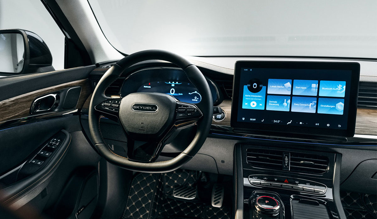 Dank des großen Panorama-Schiebedachs ist es im Innenraum luftig und hell. Insgesamt 8 Lautsprecher sorgen während der Fahrt für Konzertatmosphäre. Um alle wichtigen Informationen im Blick zu haben, befindet sich hinter dem Multifunktionslenkrad ein 12,3 Zoll großes digitales Cockpit. Ergänzt wird das multimediale Erlebnis durch ein 12,8-Zoll-Touchscreen in der Mittelkonsole.