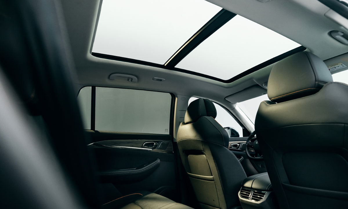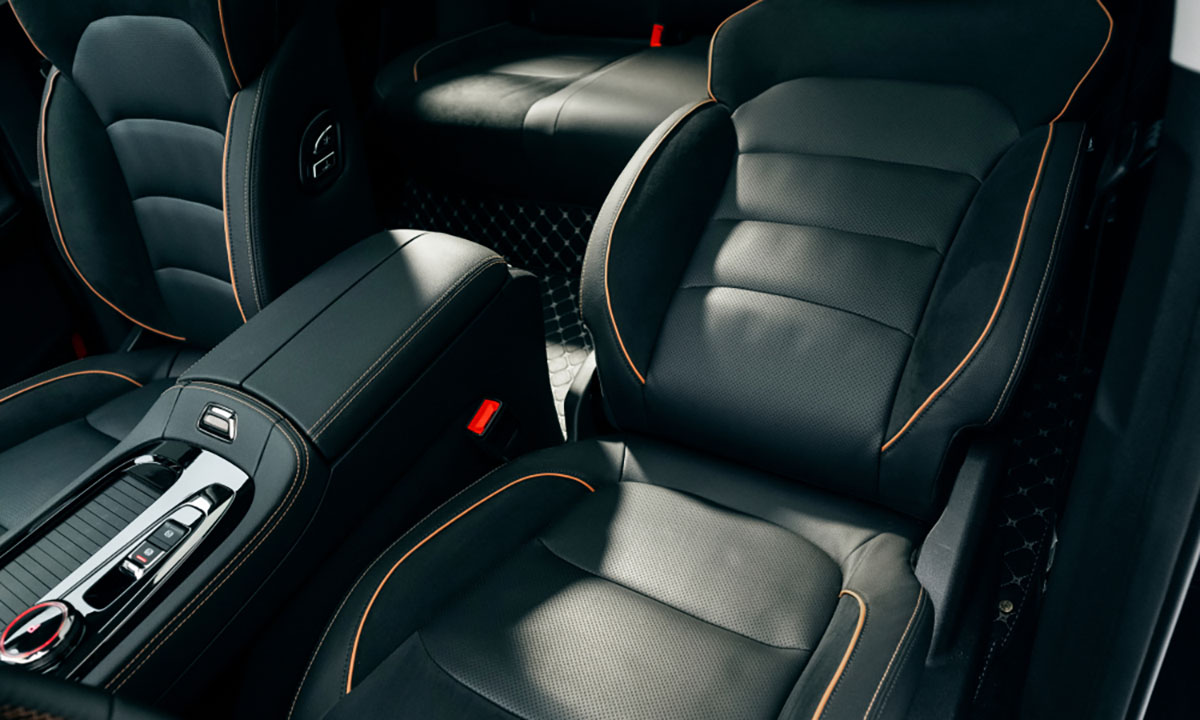 Während der Beo von außen eher unauffällig wirkt, zeigt er sich im Innenraum außergewöhnlich elegant. Holzapplikationen und orangefarbene Ziernähte runden das hochwertige Erscheinungsbild ab. Für einen hohen Fahrkomfort sorgen die bequemen Sitze aus veganem Leder, die sich beheizen und belüften lassen. Um an der Ladesäule zu entspannen, lassen sich die Sitze im „Relax-Mode“ sogar in Liegeposition stellen.
