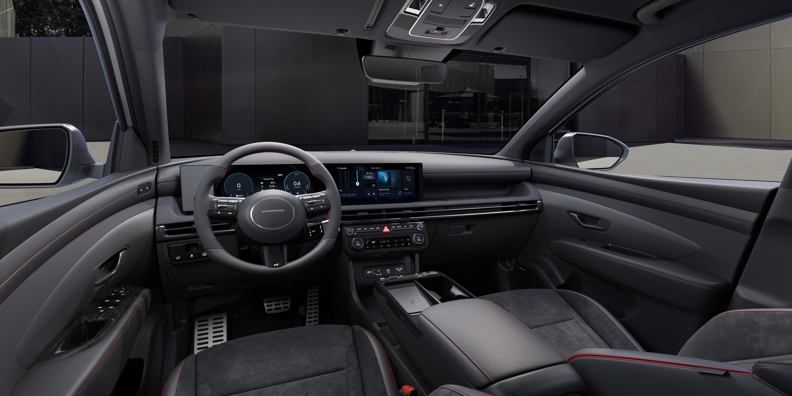 Auch im Innenraum macht das Hyundai-SUV keine Kompromisse: Cockpit und Türverkleidungen sind aus hochwertigem Kunststoff gefertigt. Die bequemen Sitze sind optional mit Lederbezügen erhältlich, die beheizt und sogar belüftet werden können. Für ein ganz besonderes Fahrerlebnis sorgt die Ambientebeleuchtung, die den Innenraum in einen von 64 Farbtönen taucht. Optional gibt es für den Hyundai Tucson ein großes Panorama-Glas-Schiebedach, das für eine leichtdurchflutete Wohlfühlatmosphäre sorgt. Zusätzlich glänzt der Koreaner mit seinem umfangreichen Entertainment-System, einem digitalen Cockpit sowie einem 10,25-Zoll-Touchscreen in der Mittelkonsole. Hat man nach dem Einkaufen keine Hände frei, erleichtert die elektrische Heckklappe das Be- und Entladen des Kofferraums.