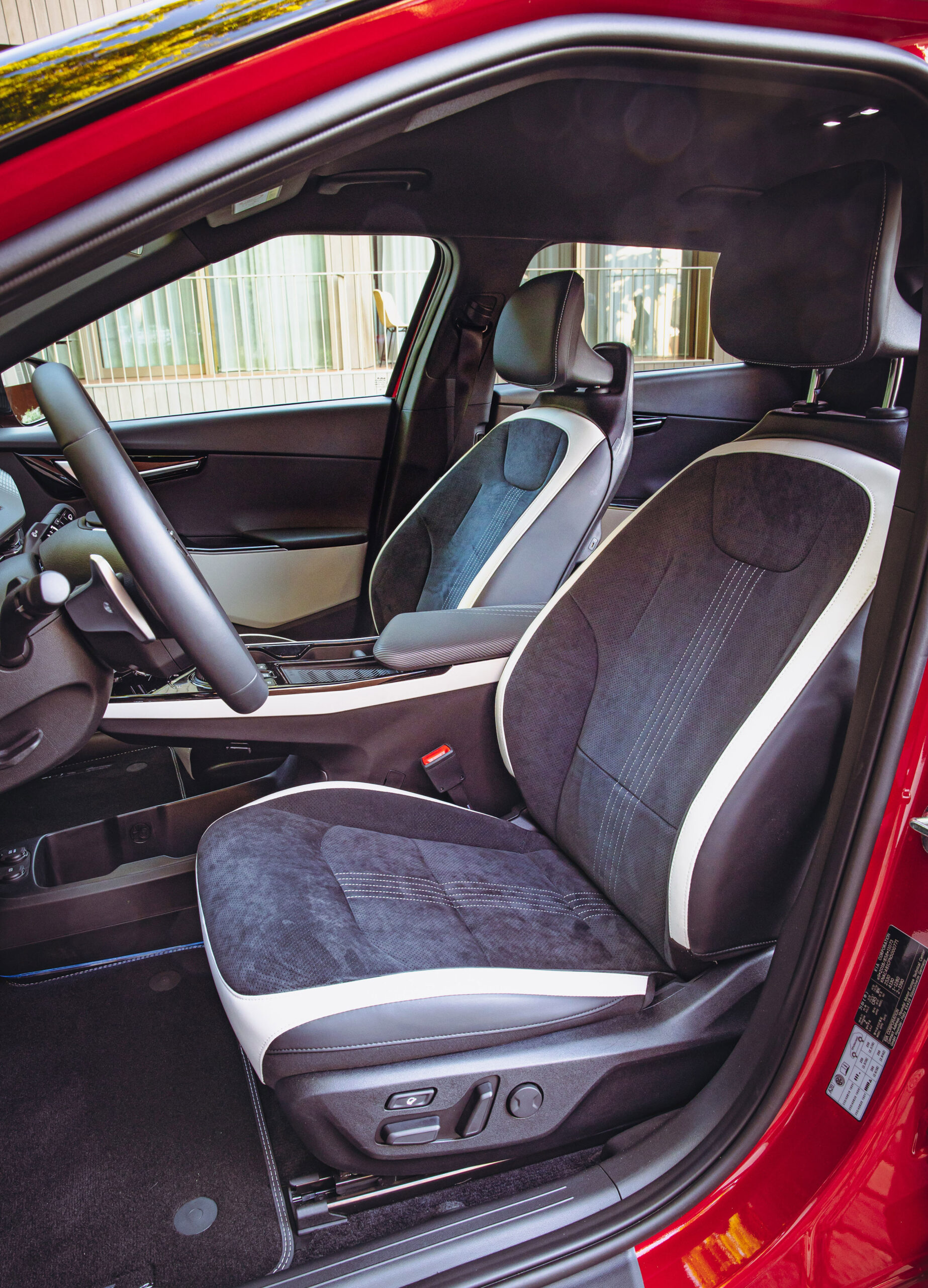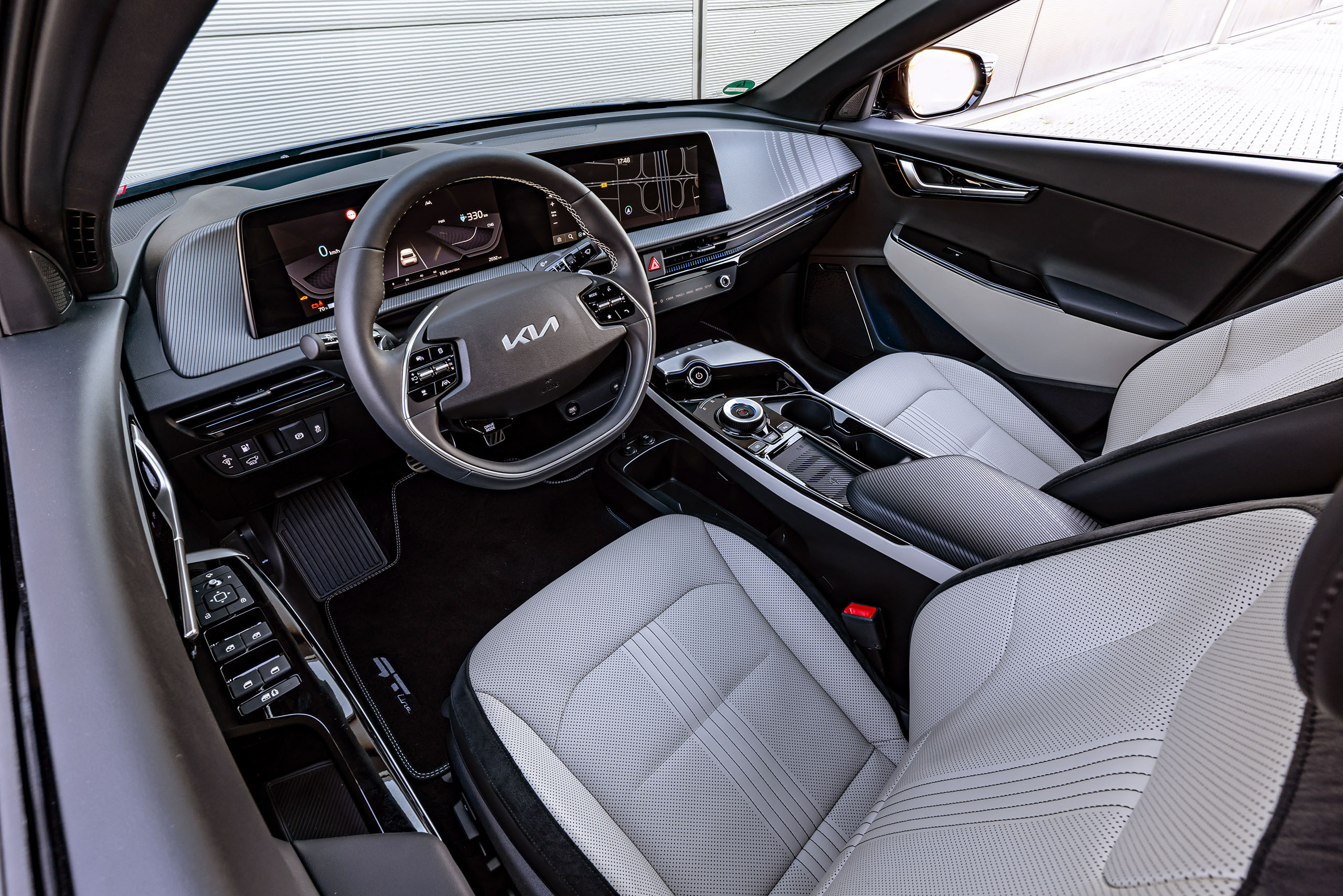 Mit dem GT-line-Paket steigt in erster Linie die Anzahl der verbauten Assistenten. Hinzu kommen Premium-Relaxion-Sitze in Wildlederoptik, eine Sitzheizung hinten sowie das Schnellladesystem (400 V/800 V, DC).