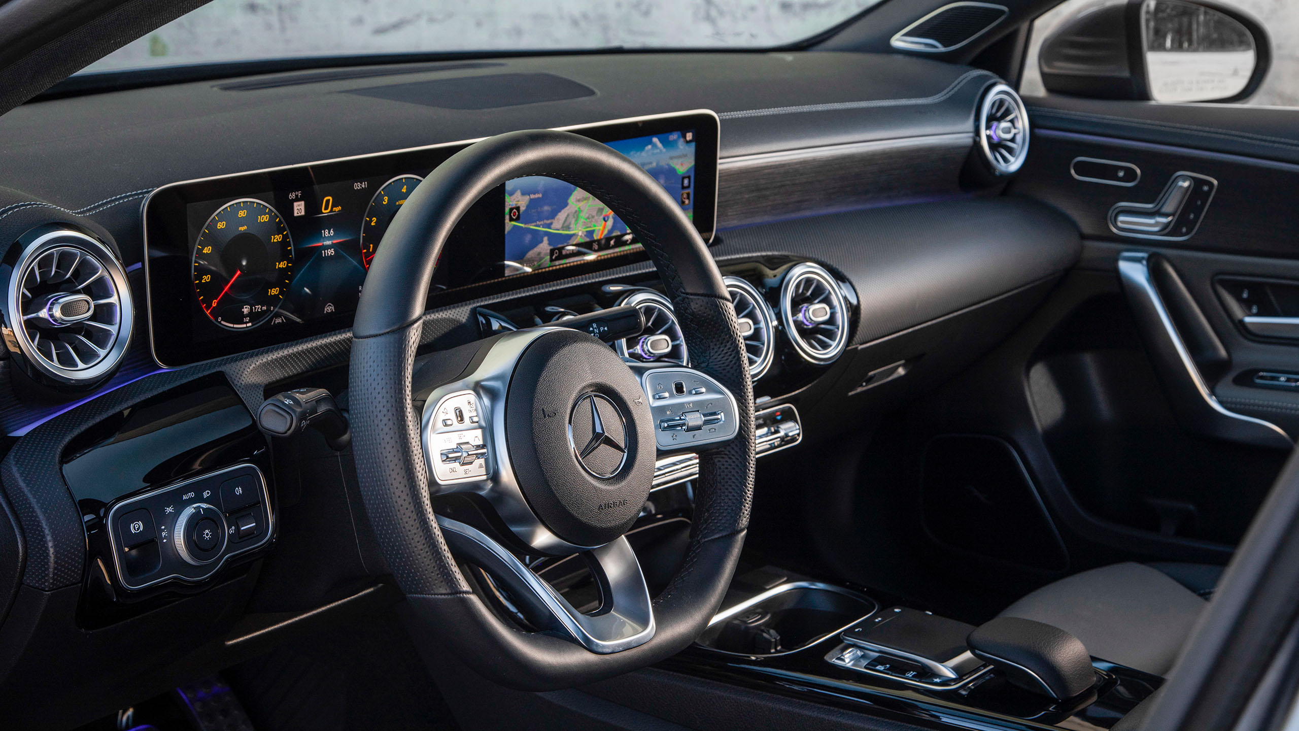 Zur Eingabe steht erstmalig bei Mercedes ein Touchscreen zur verfügung, der es erlaubt auch typische Gesten, wie Zoom, direkt auf dem Bildschirm auszuführen. Dabei fühlt sich alles sehr schnell an. So wie man es von einem Top Smartphone gewohnt ist. Außerdem gibt es zusätzlich die Möglichkeit das System über das Touchpad am Lenkrad oder auf der Mittelkonsole zu steuern. Hinzu gibt die geniale Sprachsteuerung, die sich über „Hey Mercedes“ aktivieren lässt. Das erinnert alles sehr stark an die Assistenten auf dem eigenen Smartphone. Man könnte auch sagen die A-Klasse ist das Smartphone unter den Autos.