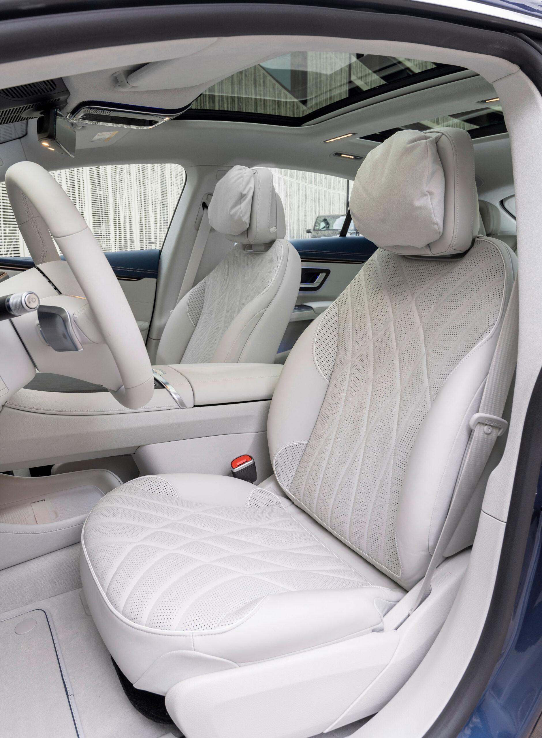 Wie man es von Mercedes gewohnt ist, kommt das elektrische Flaggschiff mit einer schier endlosen Liste an Assistenzsystemen und Komfort-Features. Um die Ausstattung an seine Bedürfnisse anzupassen gibt es vier grundlegenden Ausstattungspakete, die begehrte Features bündeln und die Konfiguration erleichtern. So spendiert das Advanced-Paket dem Mercedes-Benz EQS einen Abstandstempomat, einen Spurwechselassistent, MBUX Augmented Reality für Navigation und beleuchtete Einstiegsleisten. Das umfangreichste und zugleich teuerste Paket ist das Premium-Plus-Paket. Dieses bietet neben Multikontursitzen unter anderem ein Panorama-Schiebedach, das Digital Light, ein Head-up-Display sowie das Burmester Surround-Soundsystem.
