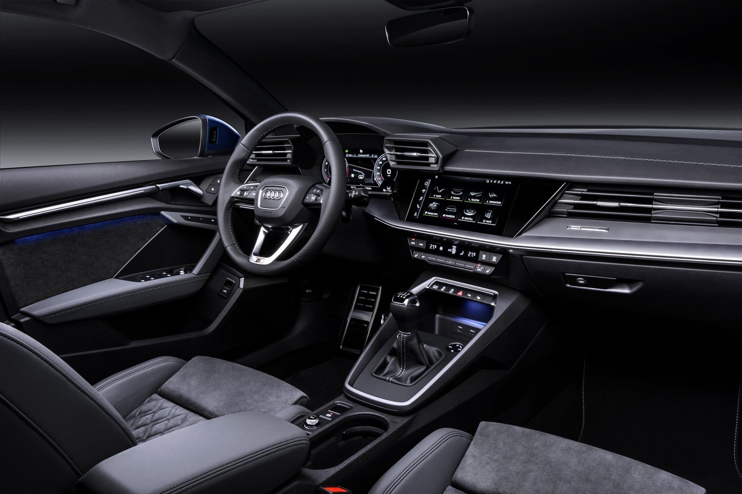 Schon in Serie bekommt der neue Audi A3 ein 10,1 Zoll Touchscreen, der jetzt besser in die Mittelkonsole integriert ist und nicht mehr wie ein aufgesetztes Tablet aussieht. Neben Toucheingaben unterstützt das System auch die Eingabe per Sprache und Handschrift über den Screen.