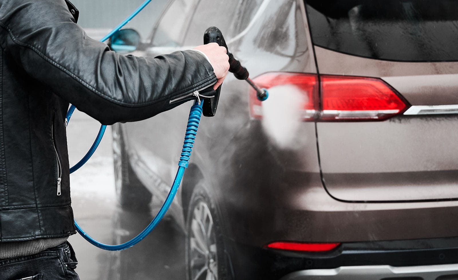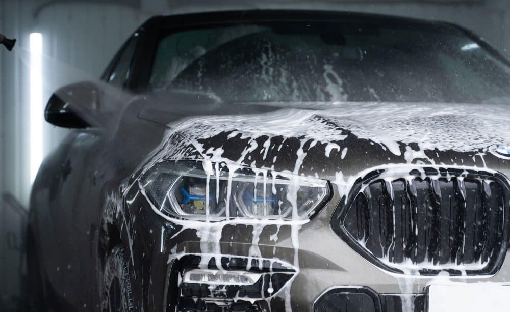 Bevor du in die Waschanlage fährst, solltest du mit einer Vorwäsche grobe Schmutzpartikel entfernen.