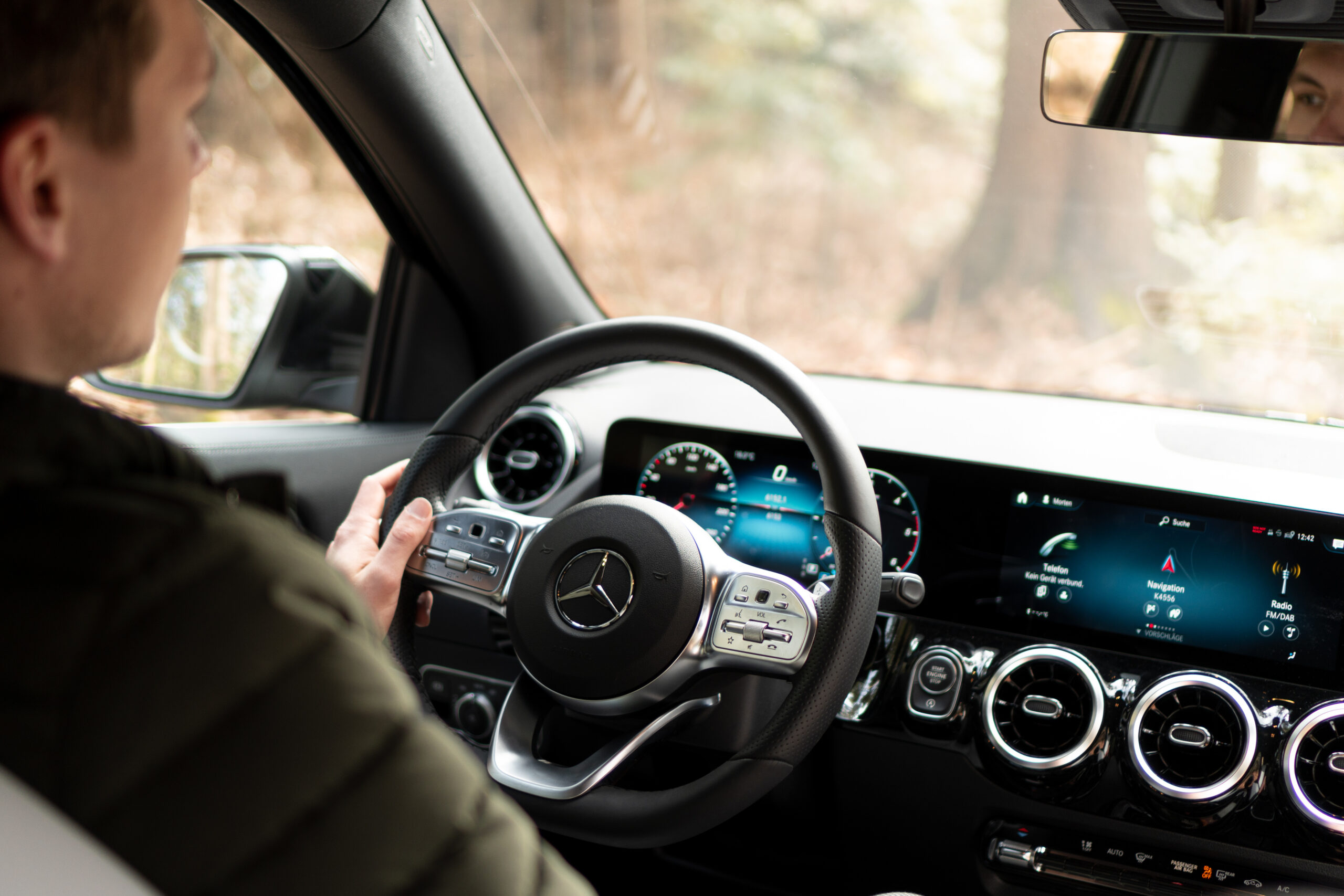 Wie zuvor erwähnt kommt es allen Passagieren zu gute, dass die Höhe des GLA um 13cm gewachsen ist. In unserem Test konnte ich als 1,90m großer Mann sowohl vorne gut sitzen als auch in der zweiten Reihe „hinter mir“. Besonders zu loben ist dabei die Kopffreiheit und Beinfreiheit. Die Breite des Fahrzeugs reicht aus, dass zwei Personen gut nebeneinander sitzen können und vorne auch ihre Arme auflegen könnten. Es können zwar drei Personen in der zweiten Reihe sitzen. Für Erwachsene wird dies mit Sicherheit sehr eng.