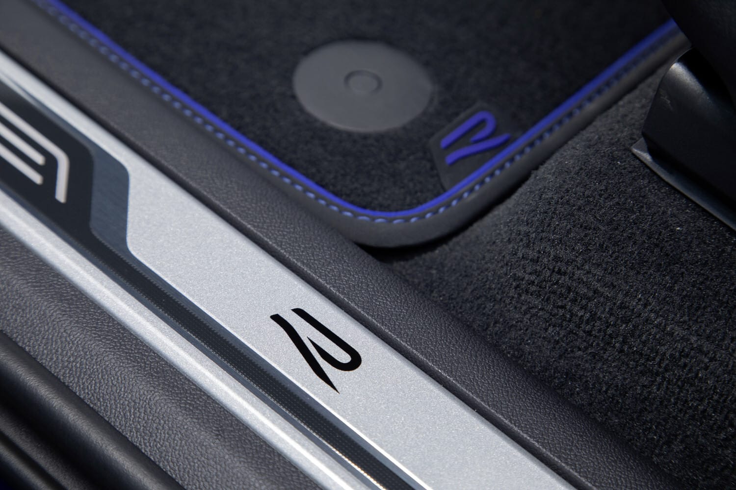 Im Interieur sind die Anpassungen ebenfalls überschaubar. Das Lenkrad ist unten abgeflacht und trägt das R Symbol. Daneben gibt es noch spezifische Einstiegsleisten und Fußmatten mit einem R Logo. Die Sitze sind mit blauen Nähten abgesetzt und auf den Kopfstützen prangt ebenfalls das R Logo.